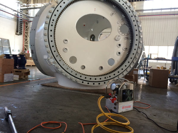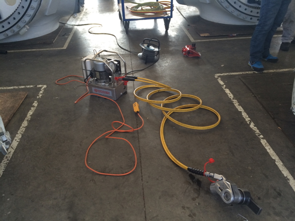 公司派遣技術員乘坐飛機前往,經過3個小時的飛行,技術員來到了這家風電設備制造廠,與此同時液壓扳手泵、液壓扳手、高壓軟管成套設備已通過物流到達了該風電設備制造廠現場。