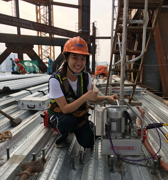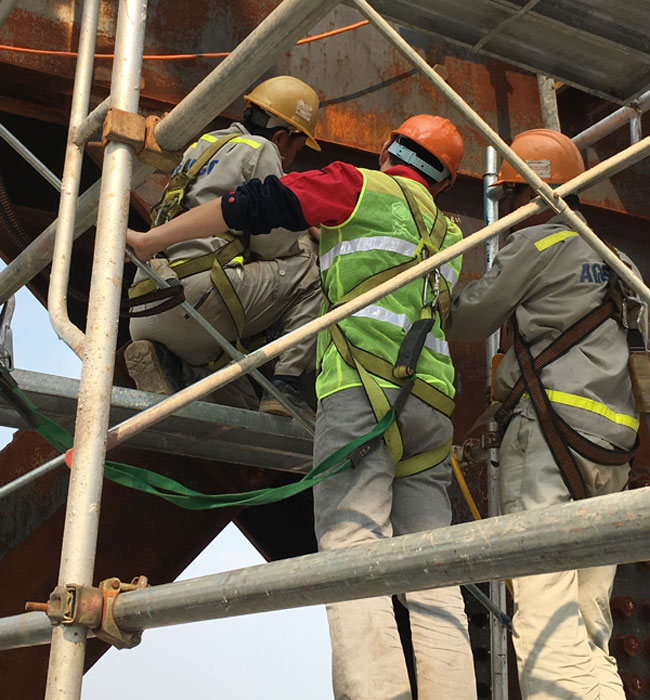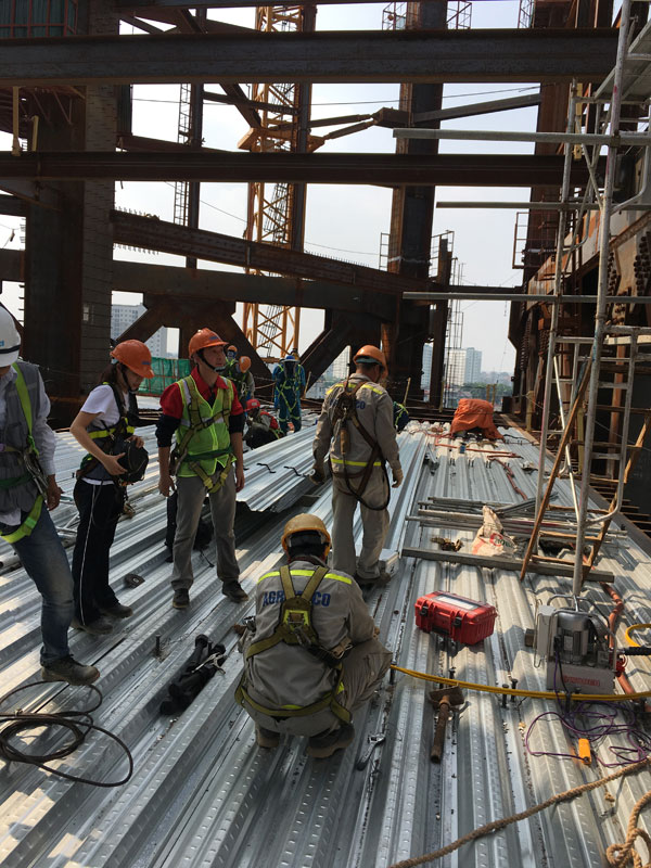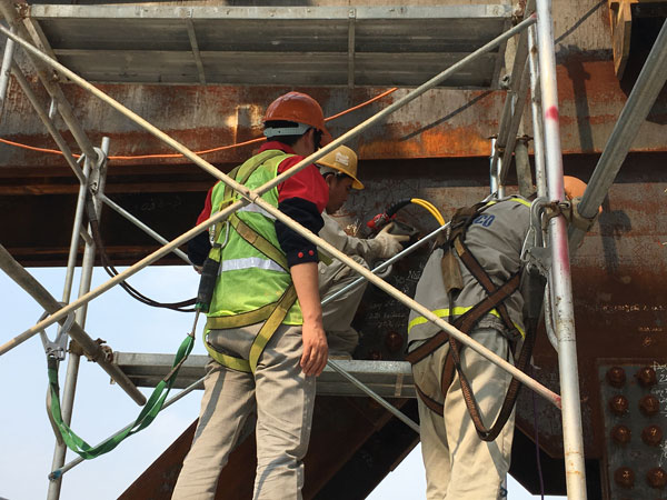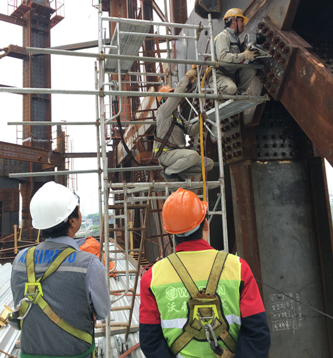 此次沃頓液壓扳手在越南應(yīng)用的項目,為韓國公司承建的越南的一家銀行,全部采用鋼結(jié)構(gòu),我們的液壓扳手就用于鋼結(jié)構(gòu)連接的螺栓預(yù)緊。該公司之前使用某進(jìn)口液壓扳手,由于諸多原因,此次選擇中國液壓扳手,同時要求我們派遣技術(shù)人員,給他們的操作工做一個系統(tǒng)培訓(xùn),順便把他們倉庫里的進(jìn)口液壓扳手進(jìn)行維修?,F(xiàn)場工作情景如下: